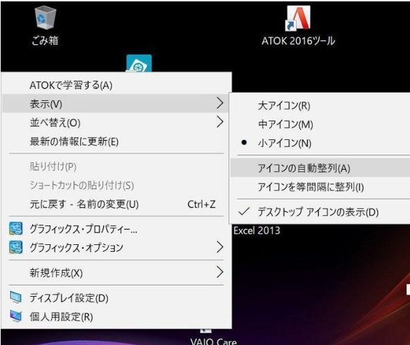 Windows10 デスクトップ アイコン 整列